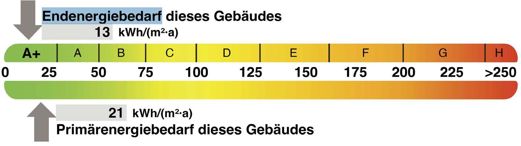 Erreichung des KfW-Effizenzhausstandard 55 und ein Endenergiebedarf von 13 kWh (A+)