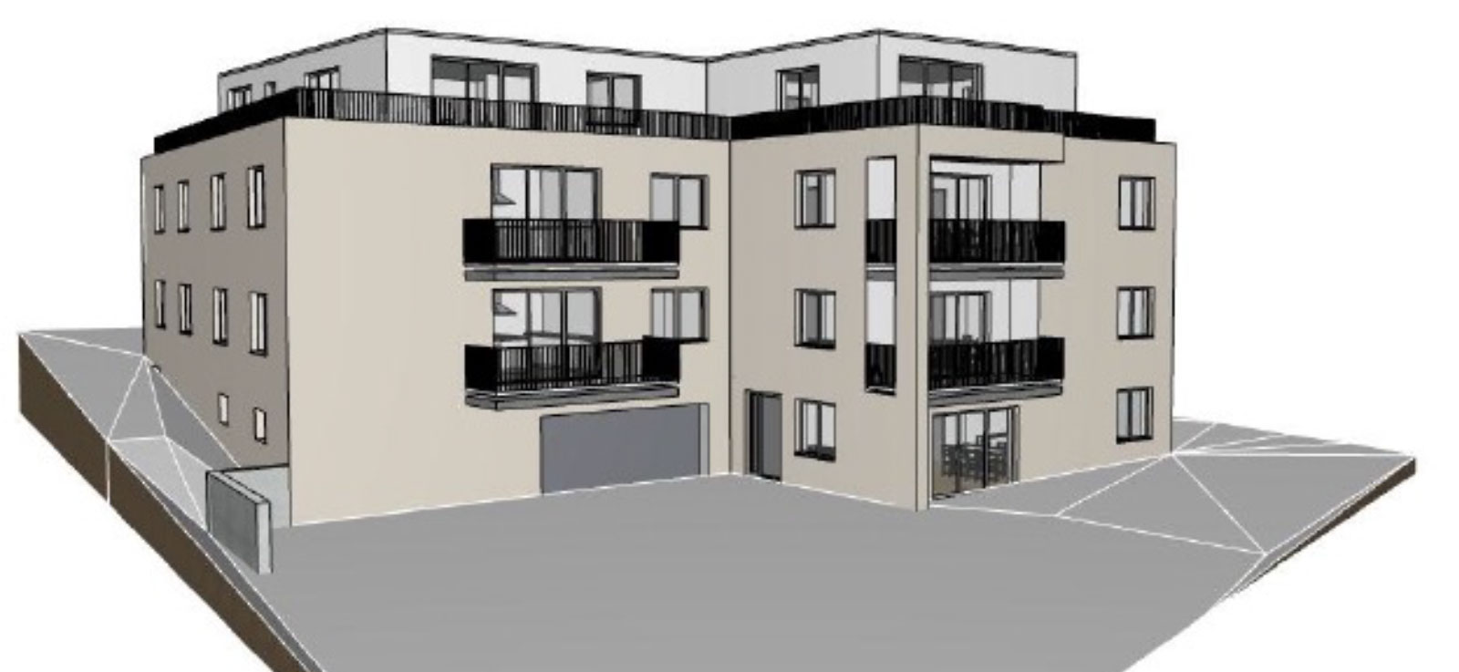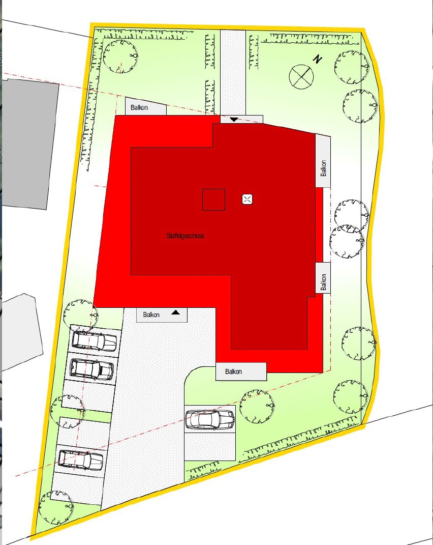 Ein bislang von einer christlichen Gemeinde genutztes Gebäude soll abgerissen und durch einen modernen Neubau ersetzt werden. Der Neubau wird auf ca. 1.200 m2 barrierefreien Wohnraum mit Fahrstuhl, Balkonen und 12 Parkplätzen bieten.